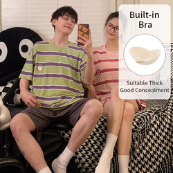 All'ingrosso a buon mercato pigiama donna cartone animato carino e comodo con seno imbottito pantaloncini a maniche corte