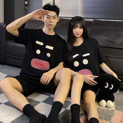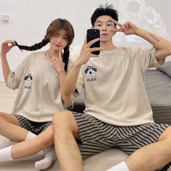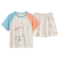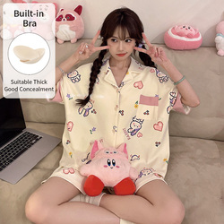 도매 저렴한 여성용 잠옷 만화 귀엽고 편안한 유방 패드 반팔 반바지 세트
